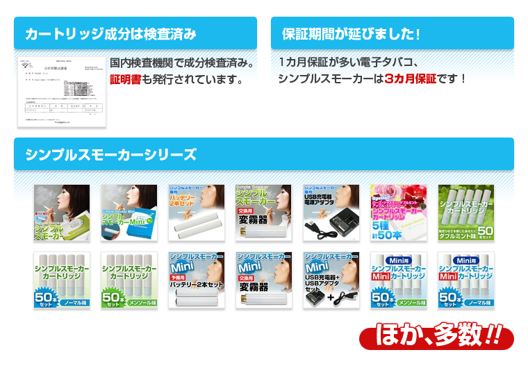 ・カートリッジの成分にはニコチンやタールを一切含んでおりません。健康にやさしい商品です。